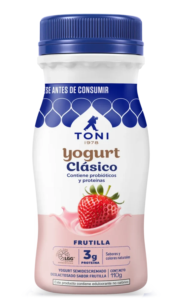 Yogurt Toni Clásico es un alimento funcional por su contenido nutricional y sus beneficios: contiene proteínas, únicos en probiótico LGG, es reducido en azúcar, no tiene espesantes y esta elaborado con sabores y colores naturales. Prefereido por sus delciosos sabores y consistencia, es una opción ideal para el desayuno y los momentos de snacking dentro y fuera del hogar. Sus sabores son: Frutilla, Durazno, Vainilla y Mora.