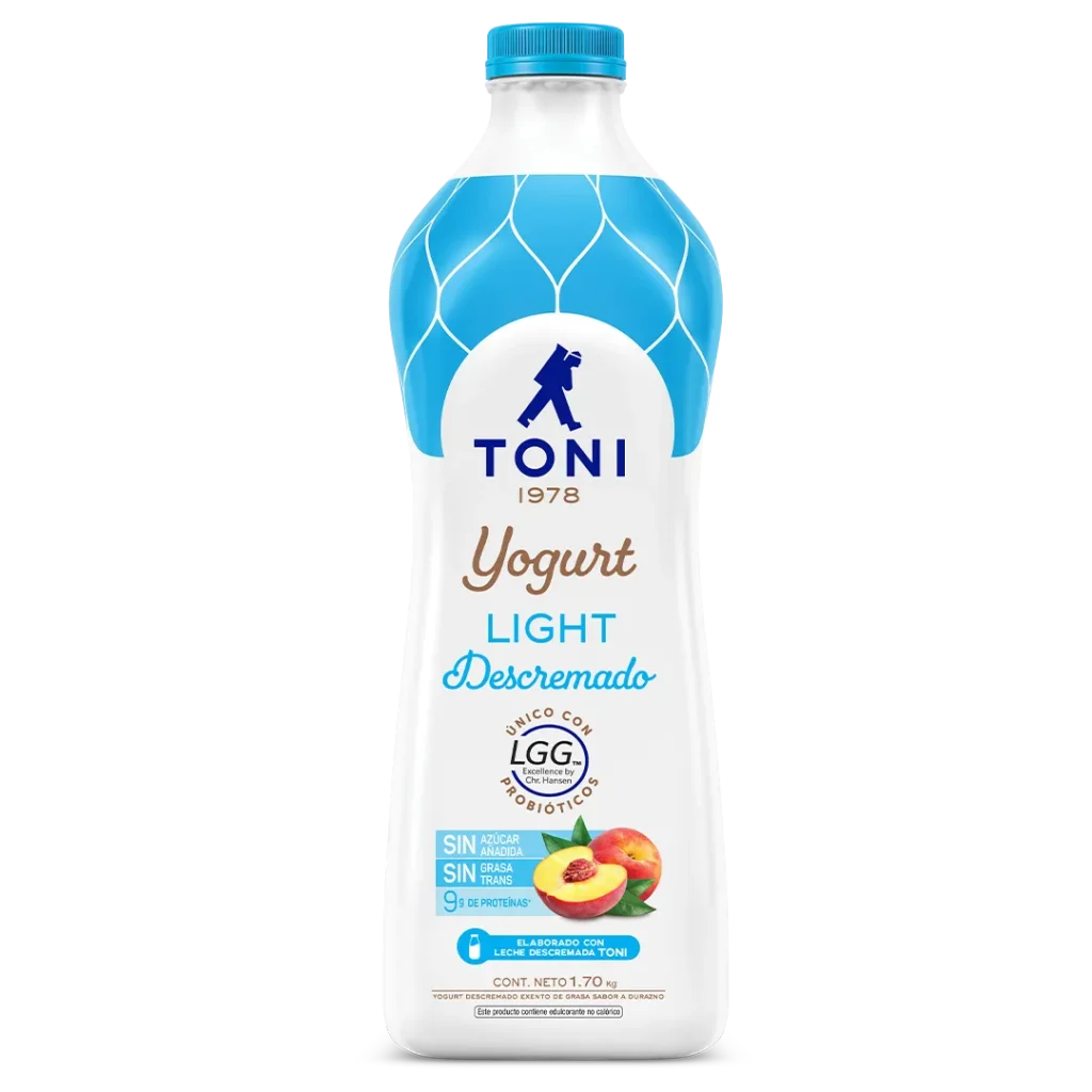 Yogurt Toni Light, es un yogurt SIN AZÚCAR añadida, elaborado con leche descremada, 0% grasa trans y ahora es deslactosado para facilitar tu digestión. Ideal para los desayuno y snacks bajo en calorías. Sus sabores son: Frutilla, Durazno, Vainilla y Mora.