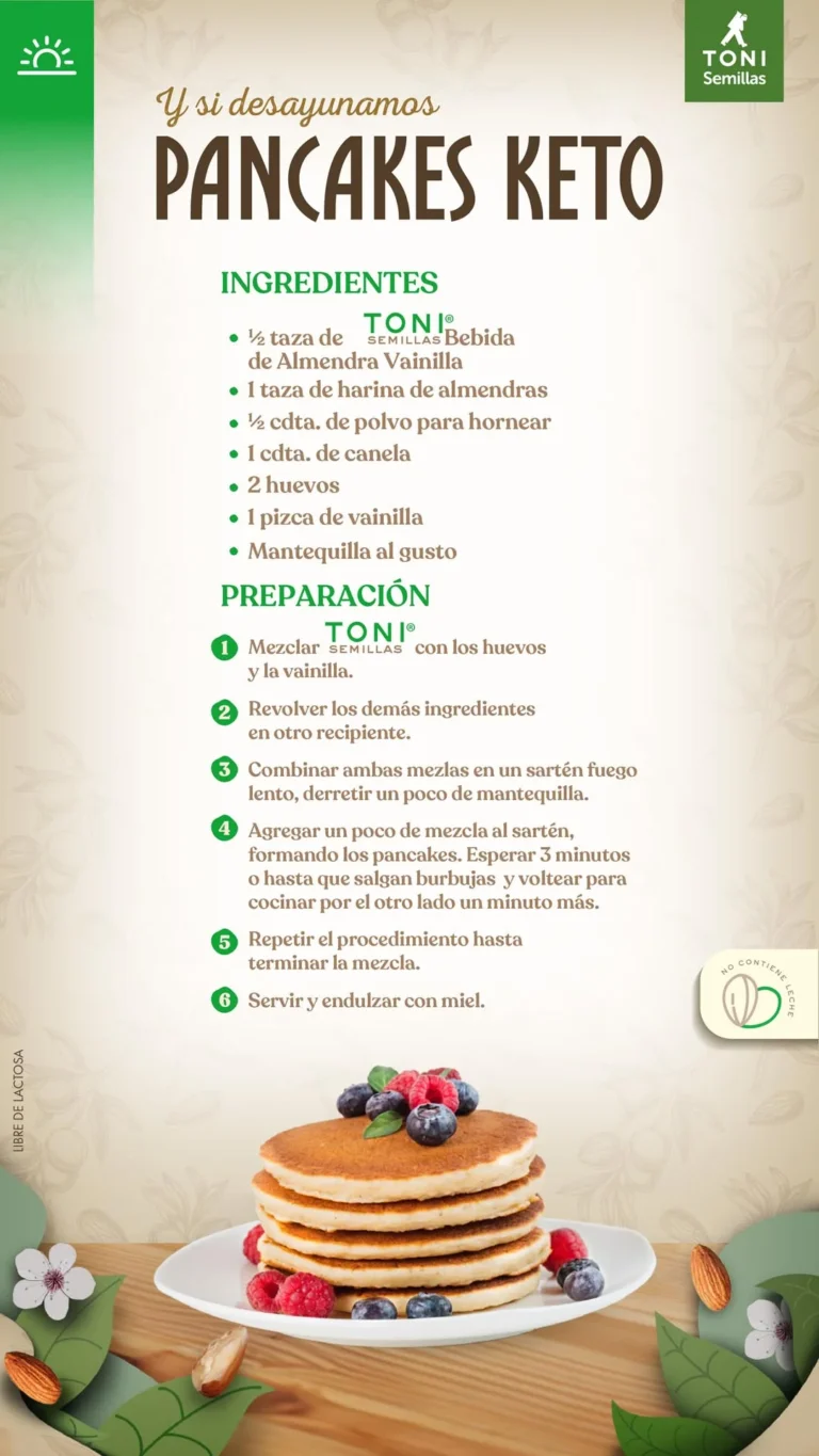 Pancakes Keto elaborados con la Bebida de Almendra Vainilla Toni y harina de almendra. Fáciles y deliciosos para comenzar el día.