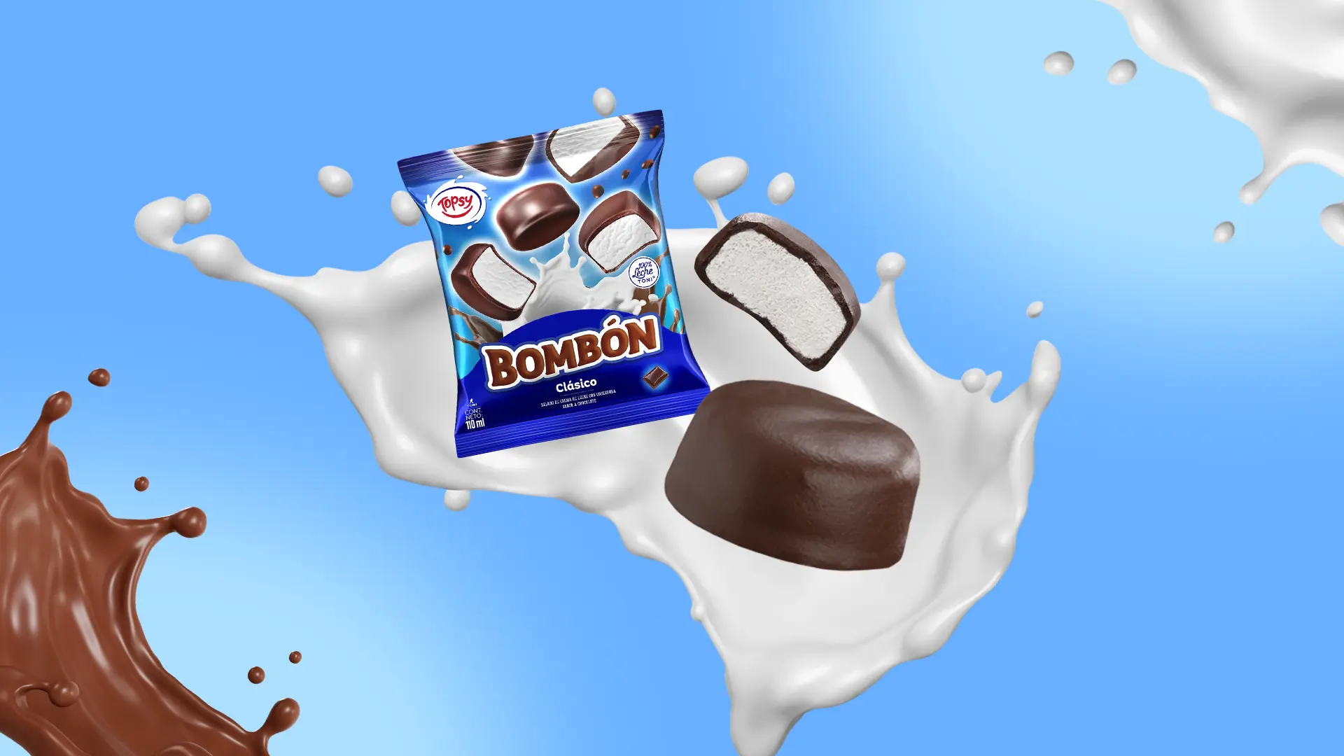 Todo lo que te gusta de Topsy en formato snack para esos antojos ¡on the go! Cremoso helado elaborado con 100% leche toni en forma de bombones sabor vainilla y cobertura de chocolate.