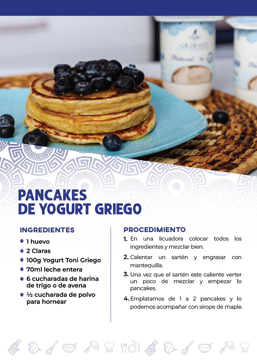 Pancakes de yogurt griego elaborada con productos ecuatorianos Toni para lograr sabor y practicidad. Receta pensada para el día a día: pocos pasos, ingredientes accesibles y resultados deliciosos.