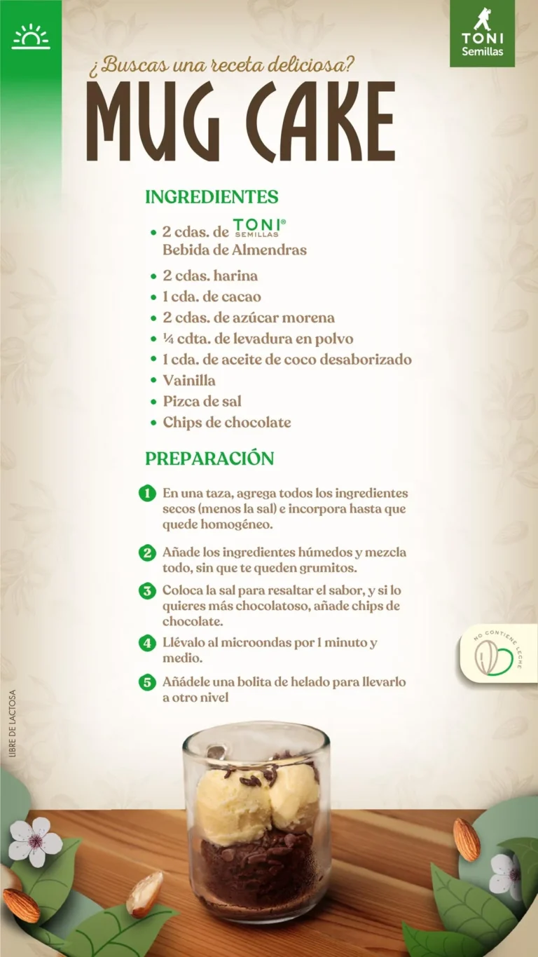 Mug cake. Preparación sencilla con Toni Semillas o Manjar Toni según receta.